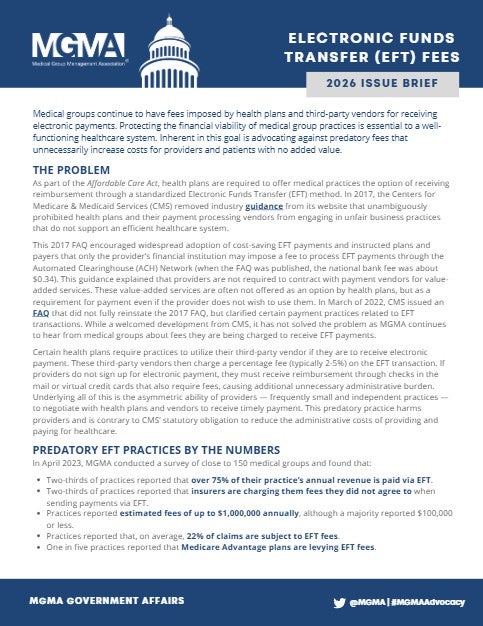The foundation of MGMA’s advocacy agenda is to ensure the sustainability of medical group practices and advance their ability to provide high-quality patient care.